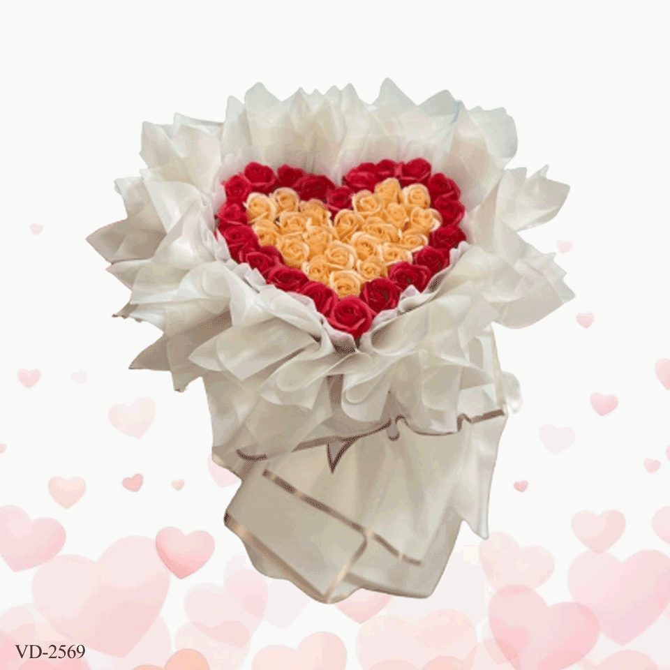 Artificial 52 heart red & yellow rose bouquet – VD-2569