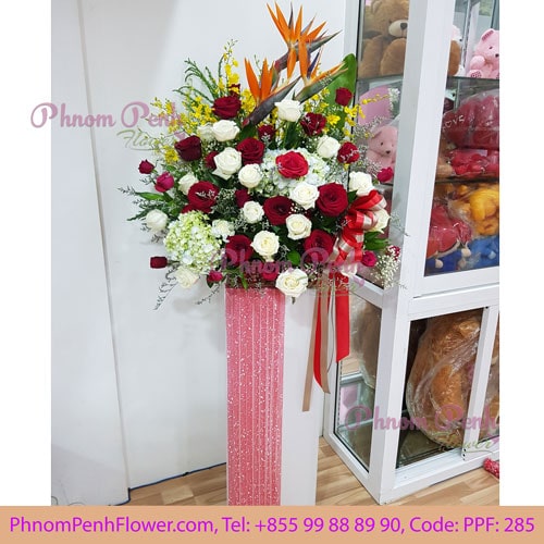The future has never shone brighter than now. Send your best wishes for a brand new beginning with this Elegant Grand Opening flower stand, the arrangement assemble of bird of paradise, roses, orchid and green leaf which perks up grand opening occasion.