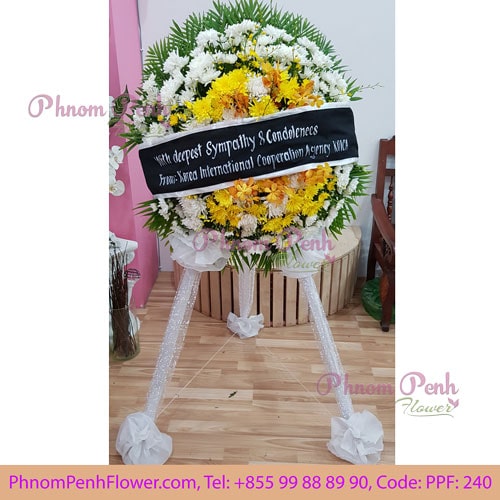 A standard funeral wreath flower stand, the funeral wreath arrange with rose, orchid and pom pom