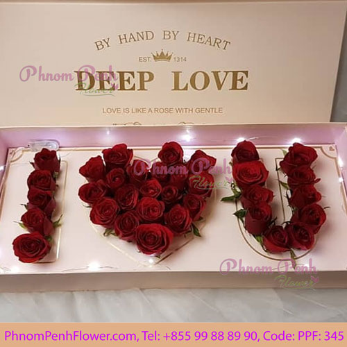 Our beautiful ” I LOVE You ” gift box made of natural red roses