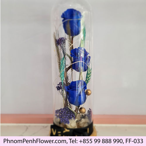 Preserve relationship with your special someone by gifting a pastel blue rose glass dome, decorated with warm white fairy lights.