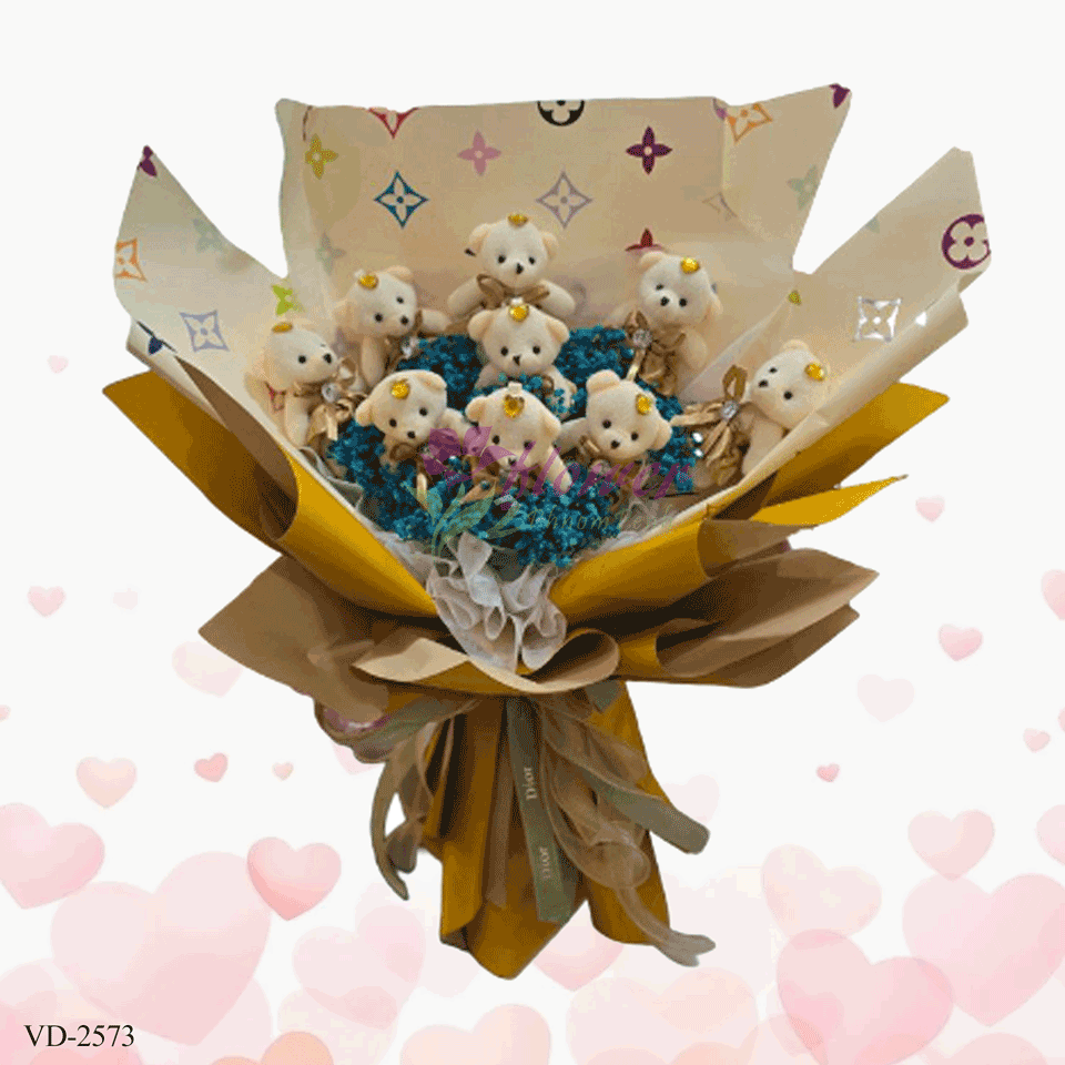 This adorable bouquet features 12 small white teddy bears, perfect for any teddy bear lover. Surprise your loved one with this unique and cute gift that will bring joy and comfort.